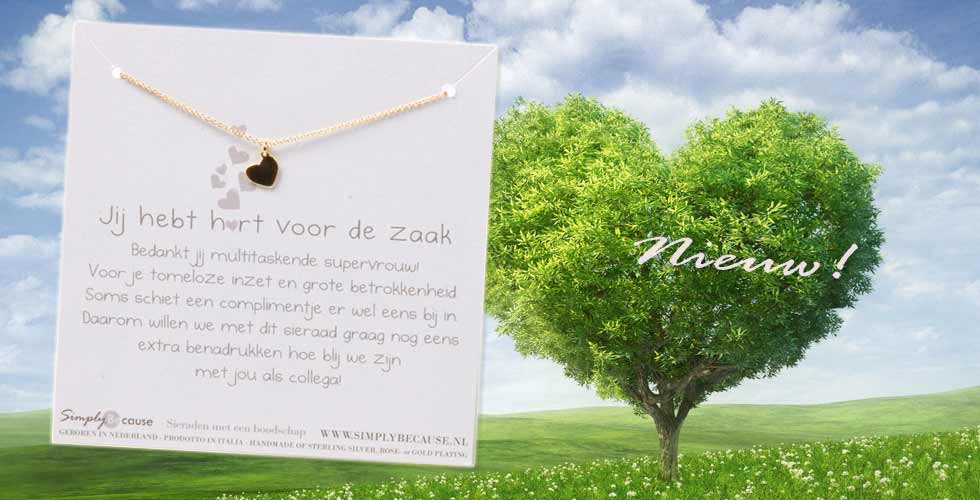 Voor die momenten is Simply Because er: sieraden met een bijzondere boodschap. Elke tekst van onze ruim 30 kaarten komt recht uit het hart, om het hart van de ander te raken. De handgemaakte verfijnde sieraden, met symbolische bedel, zijn verkrijgbaar in zilver of plated in rosé of geelgoud.